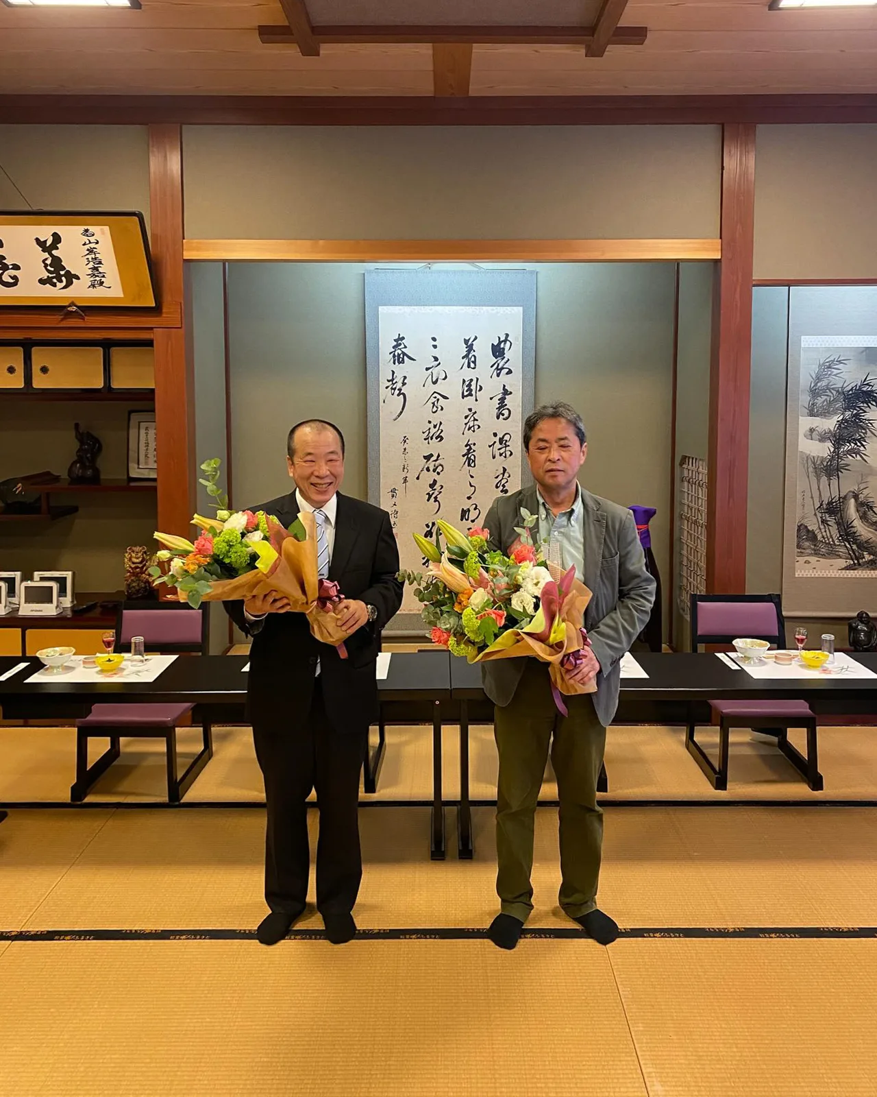 細畑芳彦新団長、井佐光幸副団長、能登町消防団をよろしく頼みます。