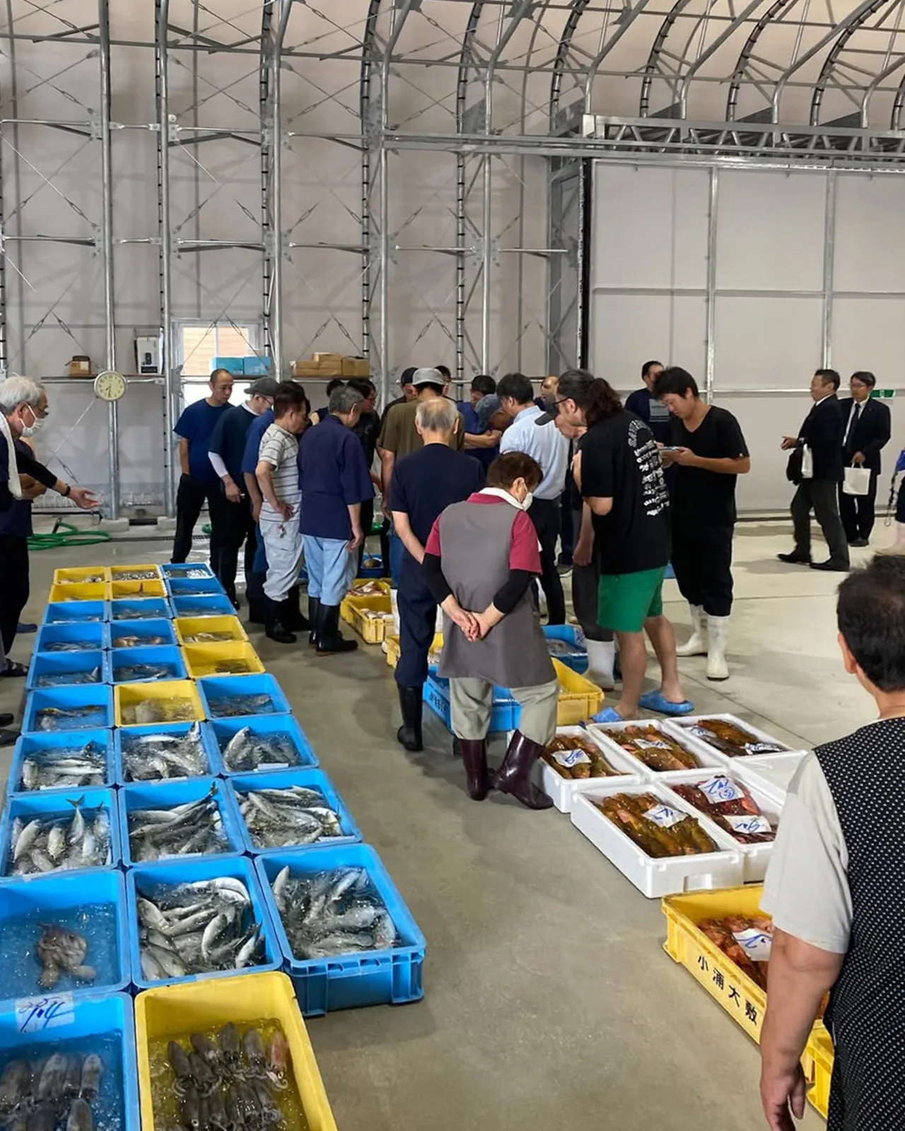9月10日午前7時15分、石川県漁協能都支所において、仮設卸市場の完成に伴う初競りが行われました。